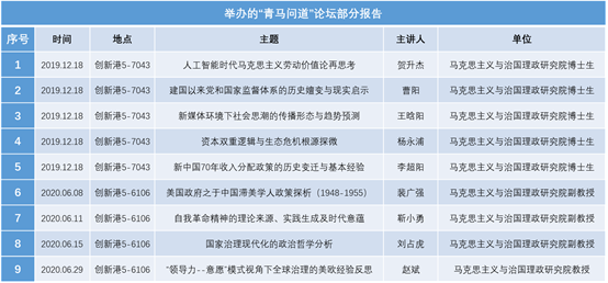 “每周都有报告,转身就见大师”。马克思主义理论与交叉学科论坛、北斗论坛、青马问道等各类论坛,给学生带来了思想和学术的盛宴。
